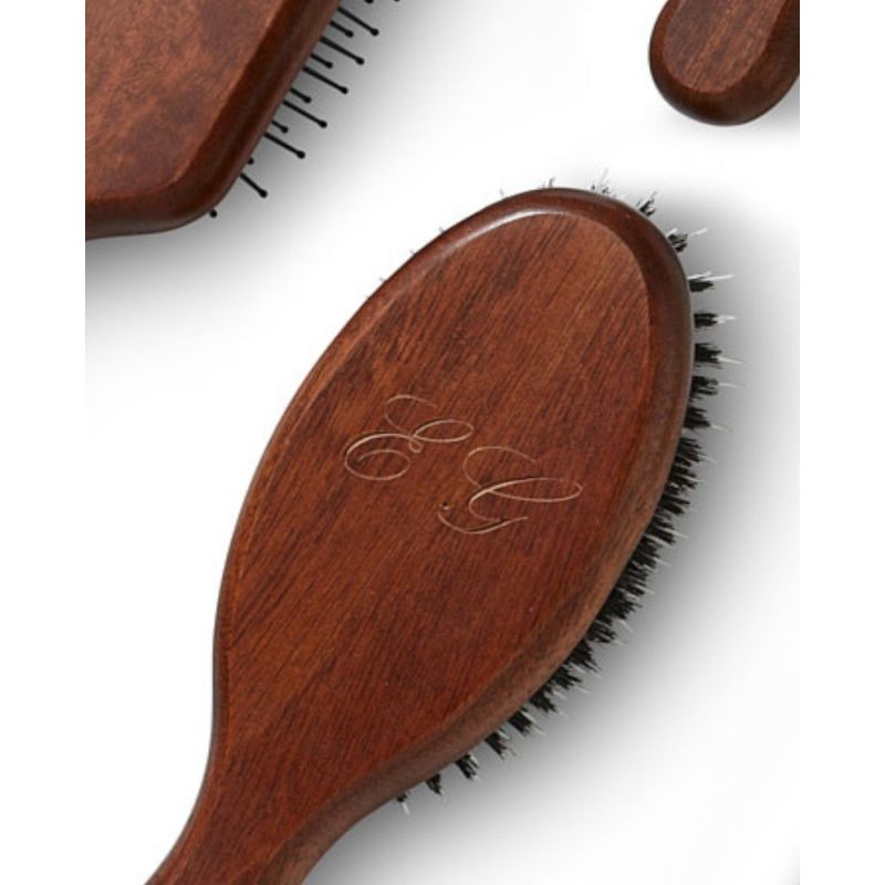 This oval brush, an Acca Kappa classic, features a user-friendly Kotibè wood handle with a white natural rubber pad. It is made of pure boar bristles and nylon monofilaments with blow-dry-safe, rounded tips.