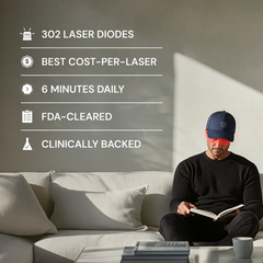 6 Minuten am Tag. Mehr brauchst du nicht. Klinisch belegtes Haarwachstum, sichtbar reduzierter Haarausfall und mehr Dichte für volleres, stärkeres Haar. 302 präzise Laser-Dioden sorgen für maximale Wirkung – jeden Tag.