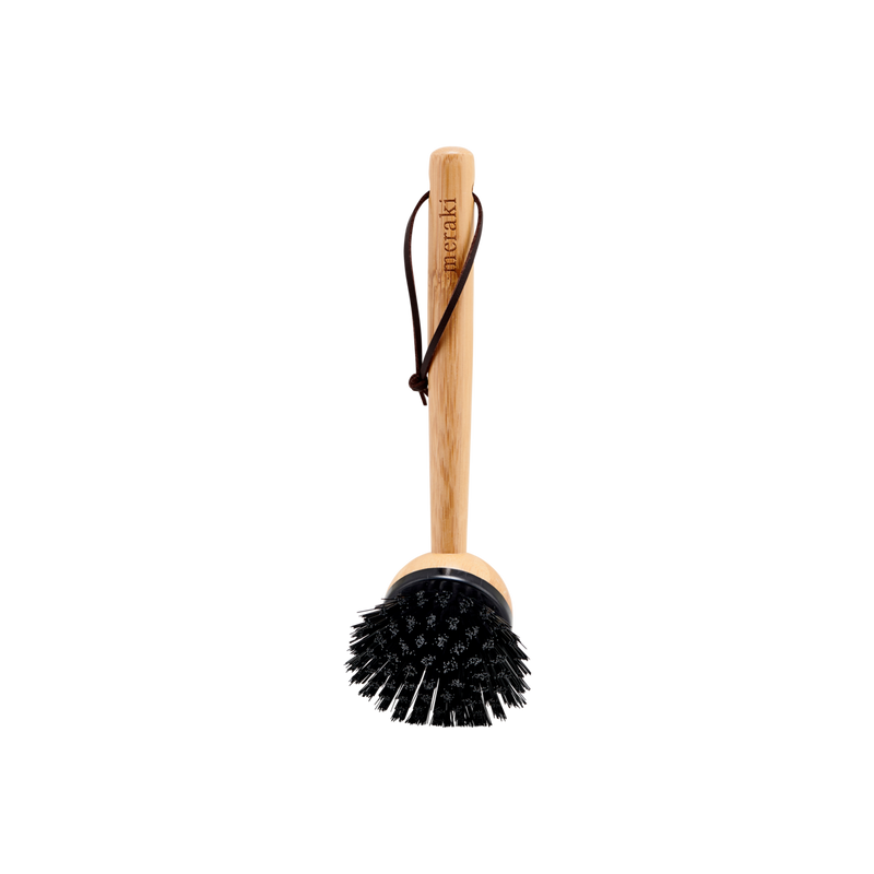 This dish brush from Meraki is the perfect companion for your dish soap. It is made from bamboo and is finished in its natural color that allows the wood grain to show through. The handle provides a comfortable grip, while the brush itself is replaceable to extend the longevity of the dish brush. When you're done using the dish brush, simply hang it on a hook thanks to the loop.