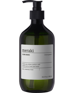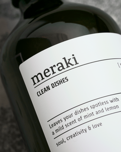 This dishwashing liquid called Forest Garden by Meraki is effective with notes of mint and lemon. The dishwashing liquid is both practical and decorative in your kitchen, as you can leave it on the kitchen counter as a detail. We recommend using 2 ml for 5 l of water. The dishwashing liquid must not be used in the dishwasher. Certified by the Nordic Ecolabel Swan.