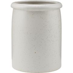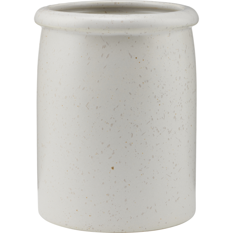 Organize your kitchen utensils stylishly with the Pion jar from House Doctor. It's made of porcelain and features a white, speckled glaze, giving it a sophisticated yet casual look. Instead of storing your spatulas, whisks, and wooden spoons in a drawer, place them on the kitchen counter and have them handy for your daily cooking. The jar is a beautiful addition to your kitchen decor and will complement any style and color scheme. Due to the matte glaze, scratches may appear over time. This adds to the charm and robust appeal of the design.