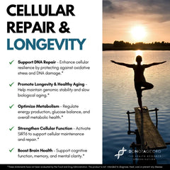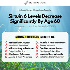 SIRT6Activator® from DoNotAge.org supports DNA repair and slows the aging process at the cellular level. Its unique formula is based on a rare, scientifically tested algae extract that has been shown to activate Sirtuin 6 (SIRT6) – a crucial protein for DNA repair, metabolism, telomere stability, and immune function. SIRT6Activator® promotes energy production, metabolic health, reduces inflammation, and strengthens cellular resilience to slow age-related decline.