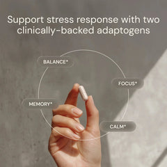 Zwei Adaptogene, eine Kapsel – für weniger Stress, mehr Fokus und eine stabile, ruhige Energie im Alltag.