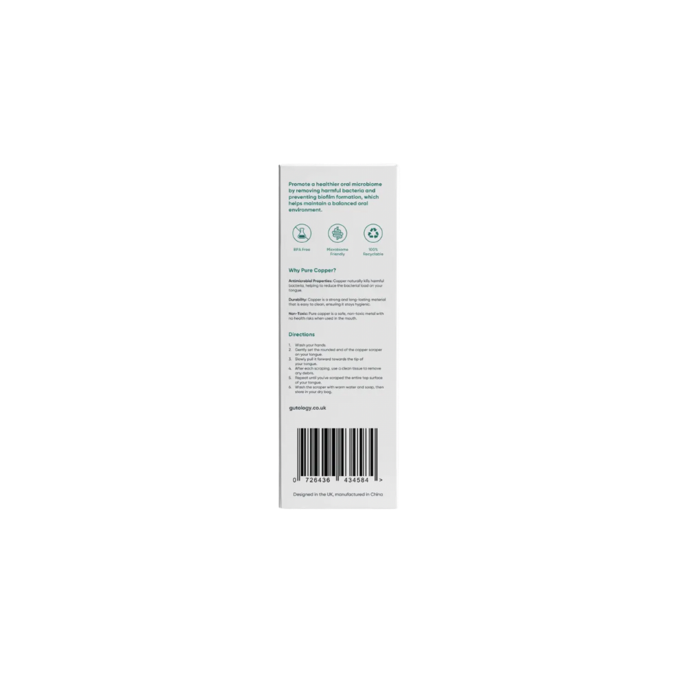 100 % reiner Kupfer-Zungenschaber für frischen Atem, gesunden Mund und ausgewogene Mundflora – täglich für Hygiene und ganzheitliches Wohlbefinden.