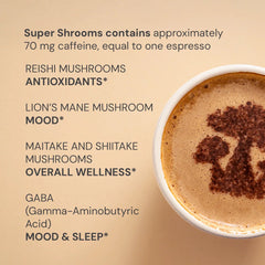 Super Shrooms ist eine tägliche Adaptogen-Mischung für Menschen, die Energie, Fokus und Gelassenheit gleichzeitig unterstützen möchten.
