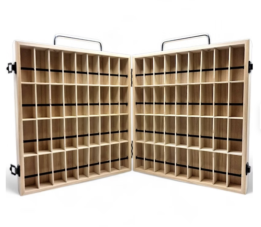 Unser Ölekoffer aus Holz bietet die Möglichkeit bis zu 72 verschiedene ätherische Öle zwischen 10-15 ml aufzubewahren. Dieser hochwertige Koffer ist perfekt für den professionellen Gebrauch bei Events, Schulungen und Seminaren geeignet. Dank der praktischen Aufbewahrungsmöglichkeit im Holzkoffer sind die Öle stets gut sortiert, sichtbar und griffbereit.