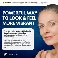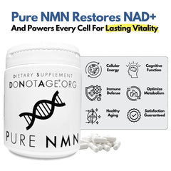 Unerbittliche Forschung. Unvergleichliche Reinheit. DO NOT AGE NMN bietet 99,8 % Reinheit für maximale Aufnahme und Wirkung. Von über 2.500.000 Menschen genutzt, unterstützt es Zellenergie, mentale Klarheit und hilft, altersbedingte Prozesse auf zellulärer Ebene zu verlangsamen.