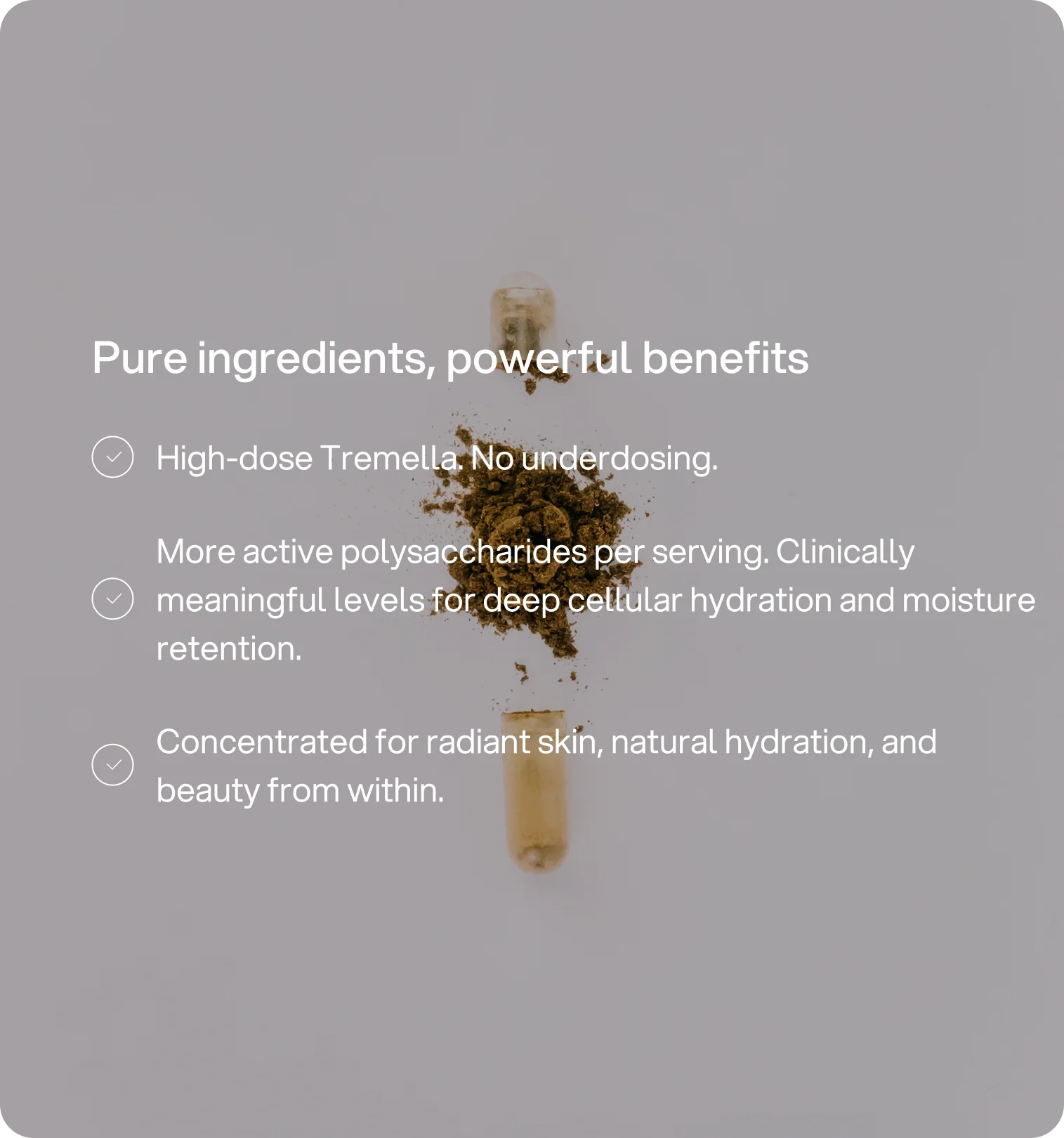 Die Beauty-Pilz-Kapsel für natürliche Hauthydratation, Antioxidantien-Schutz und Strahlkraft – täglich für Vitalität, Hautgesundheit und Longevity.